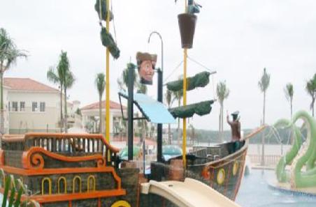 在由水管搭建起來的雜亂建筑里面,有各種水槍、水炮以及各種玩水設施。在上面還有滑道、兒童滑道。一般的大型精靈樹屋的上面都會有一到兩個大水桶(容量一般有2噸),當水桶里面裝滿水時就會將水倒出來。精靈樹屋可以帶給人“爽”與“FAN“的感覺!